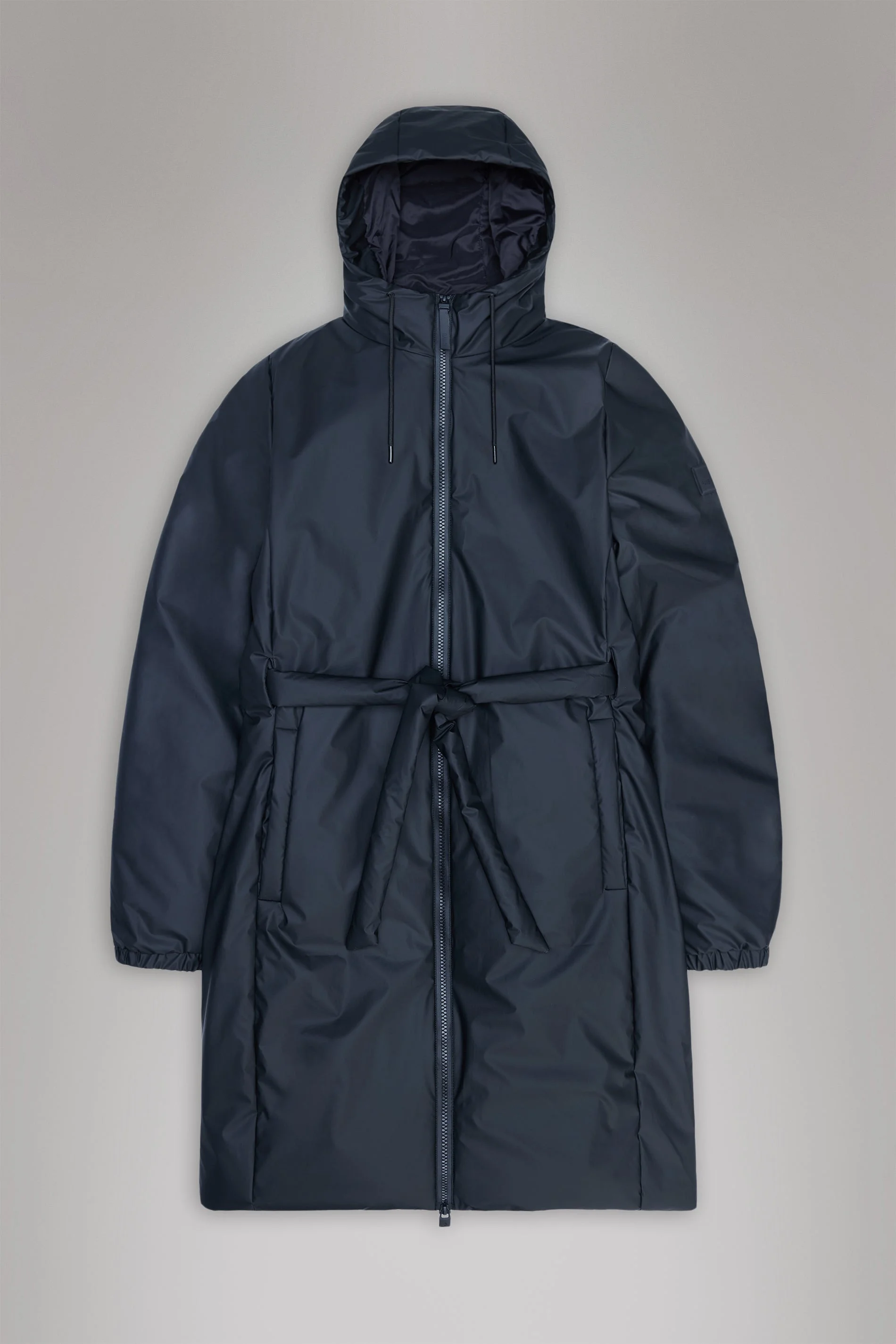 Lohja Long Insulated Curve Jacket is a lightweight transeasonal piece fitted for women. Characterized by its long silhouette and belt that elegantly accentuates the waist. The style features concealed fleece-lined side pockets, elasticated cuffs and an insulated hood with drawstring adjustment. Completed with a belt to accentuate the waist, this long jacket is easily fitted for an individual silhouette. The Lohja collection fills the gap between rainwear and winter jackets with an understated design but a high practicality. Insulated with a super light padding making it your go-to jacket in between seasons or through mild winters. This waterproof jacket is cut from Rains’ signature PU fabric with welded seams. The finish is lightweight with a smooth feel SKU: 15880\47 Details Composition: 100.00% PES (Polyester) Water column: 5000 mm Breathability: 3.000 g/m2 water vapor transmission Windproof: Protection against windchill Fit: Long Weight: 22.2 oz Features - Waterproof signature PU fabric - Light insulation and 100% nylon liner - Insulated hood with drawstring adjustment - Concealed fleece-lined side pockets - Inside zipped pocket - Elasticated cuffs for a tighter fit around wrist - Welded seams - Slightly shaped fit - Rubberized weatherproof hardware
