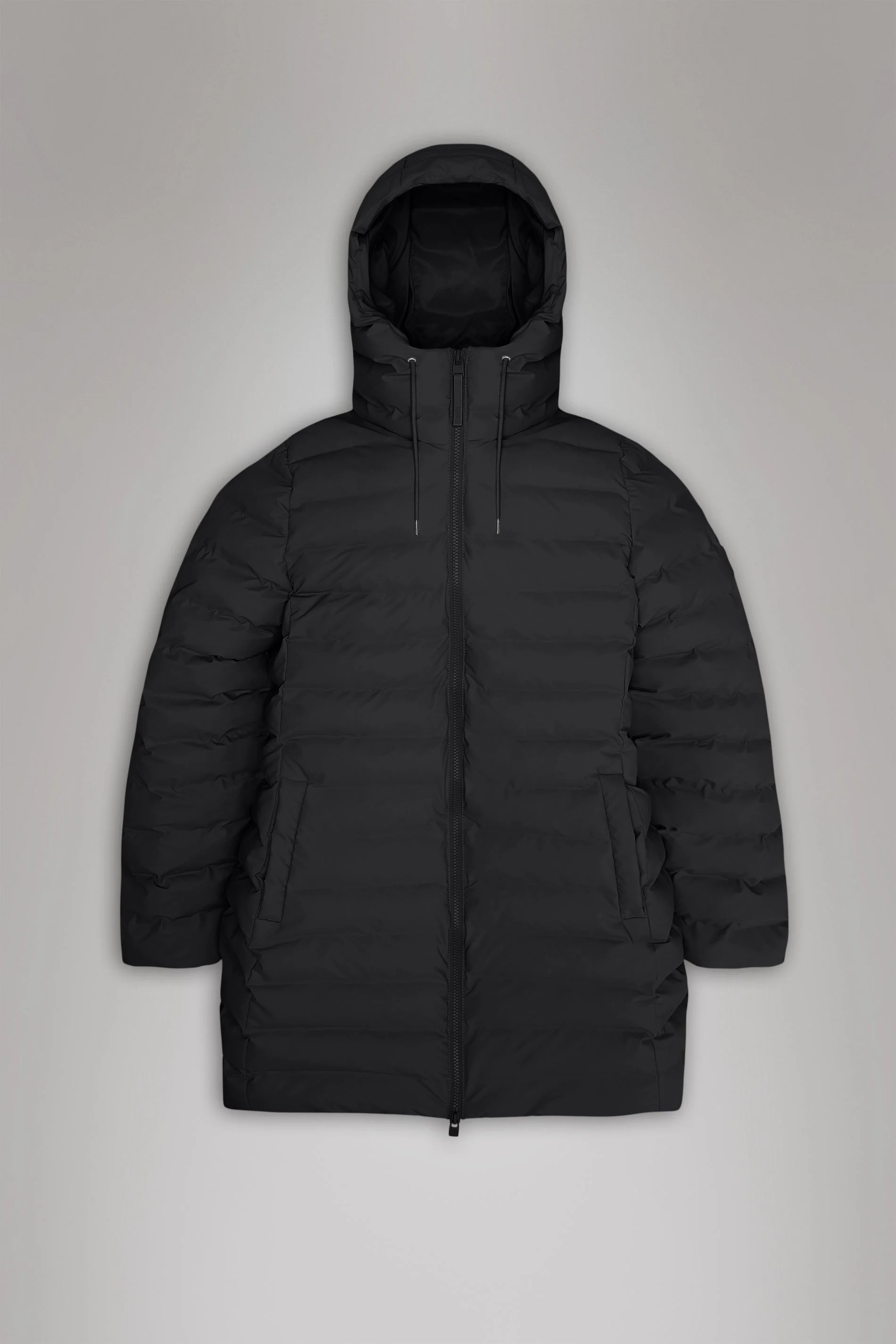 Lohja Long Puffer Curve Jacket is a lightweight transeasonal piece for women. Characterized by a slightly shaped fit and signature chambers giving it a puffer aesthetic. The Lohja collection fills the gap between rainwear and winter jackets as a simple jacket with a light padding inside. The style features concealed fleece-lined side pockets, technical jersey storm cuffs and an insulated hood with drawstring adjustment. The style is understated in design but high in practicality. Designed with signature chambers and insulated with light padding, this jacket will be a go-to in between seasons or through mild winters. This waterproof jacket is cut from Rains' signature PU fabric with welded seams. The finish is lightweight with a smooth feel. SKU: 15890\01 Details Composition: 100.00% PES (Polyester) Water column: 5000 mm Breathability: 3000 g/m2 water vapor transmission Windproof: Protection against windchill Fit: Long Weight: 26.1 oz Features:
