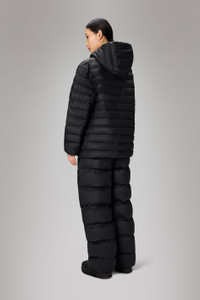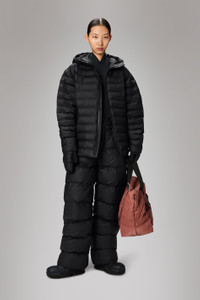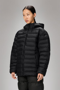 Lohja Puffer Jacket is a lightweight transeasonal piece. Characterized by signature chambers giving it a puffer aesthetic. The Lohja collection fills the gap between rainwear and winterwear as a simple jacket with light padding inside. Lohja Puffer Jacket features concealed fleece-lined side pockets, technical jersey storm cuffs and an insulated hood with drawstring adjustment. The style is understated in design but high in practicality. Designed with signature chambers and insulated with light padding, this jacket will be a go-to in between seasons or through mild winters. This waterproof jacket is cut from Rains' signature PU fabric with double welded seams. The finish is lightweight with a smooth feel SKU: 15810\01 Details Composition: 100.00% PES (Polyester) Water column: 5000 mm Breathability: 3000 g/m2 water vapor transmission Windproof: Protection against windchill Weight: 28.2 oz Features - Waterproof signature PU fabric - Insulated with signature chamber technology - Insulated hood with drawstring adjustment - Concealed fleece-lined side pockets - Internal zipped pocket - Technical jersey storm cuffs - Double welded seams - Rubberized weatherproof hardware - Relaxed fit