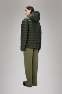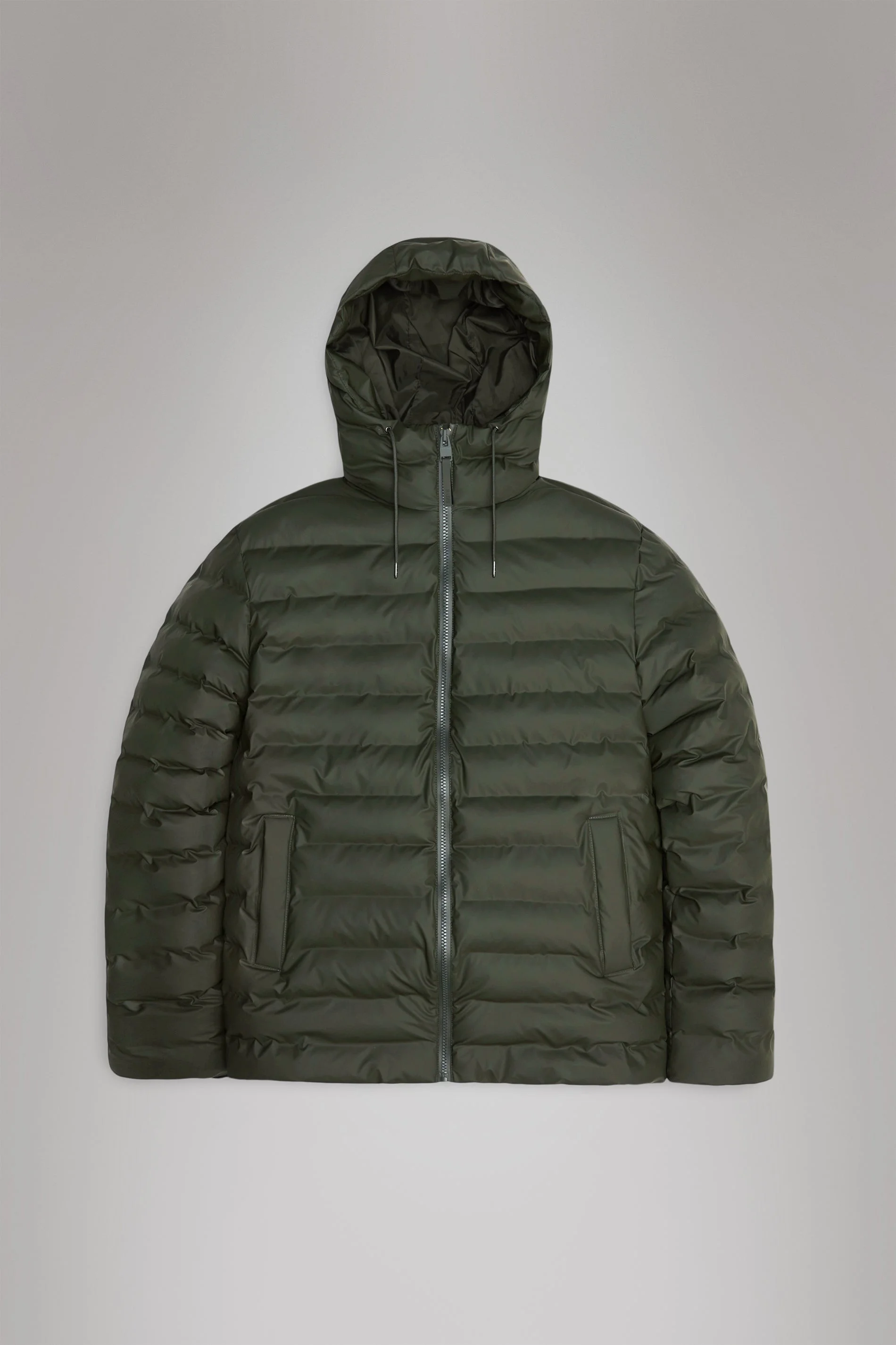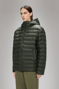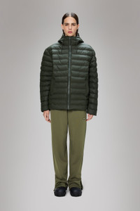 Lohja Puffer Jacket is a lightweight transeasonal piece. Characterized by signature chambers giving it a puffer aesthetic. The Lohja collection fills the gap between rainwear and winterwear as a simple jacket with light padding inside. Lohja Puffer Jacket features concealed fleece-lined side pockets, technical jersey storm cuffs and an insulated hood with drawstring adjustment. The style is understated in design but high in practicality. Designed with signature chambers and insulated with light padding, this jacket will be a go-to in between seasons or through mild winters. This waterproof jacket is cut from Rains' signature PU fabric with double welded seams. The finish is lightweight with a smooth feel SKU: 15810\03 Details Composition: 100.00% PES (Polyester) Water column: 5000 mm Breathability: 3000 g/m2 water vapor transmission Windproof: Protection against windchill Weight: 28.2 oz Features - Waterproof signature PU fabric - Insulated with signature chamber technology - Insulated hood with drawstring adjustment - Concealed fleece-lined side pockets - Internal zipped pocket - Technical jersey storm cuffs - Double welded seams - Rubberized weatherproof hardware - Relaxed fit