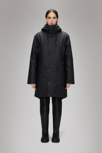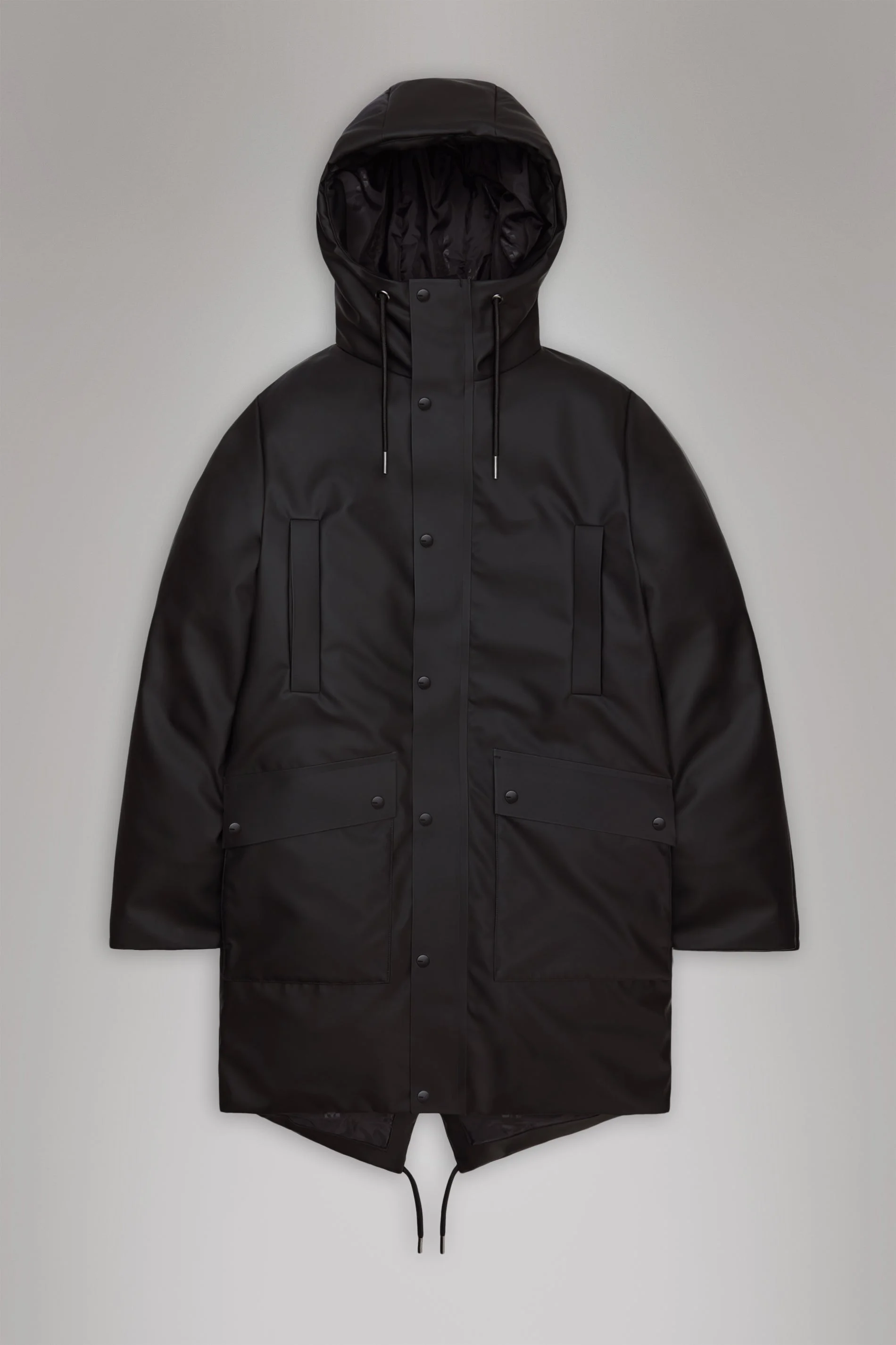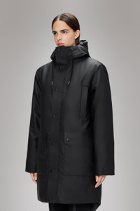 Nome Long Parka is a transeasonal piece with an urban aesthetic. This jacket delivers an easy-to-wear feel in a long fit. This parka style features heat pressed welt chest pockets, cargo pockets with side entrance and heat pressed pocket flaps and an inside zip pocket in tonal hardware. The silhouette is topped by an insulated hood with chunky tie cords. The Nome collection fills the gap between light and heavy thermal jackets. This parka has a long fit with flat padded insulation creating your go-to jacket for city commutes in between seasons. The waterproof jacket is cut from Rains’ signature PU fabric with a strong and durable woven backside. The finish is clean with a sharpened look and a smooth feel. SKU: 21460\01 Details Composition: 100.00% PES (Polyester) Water column: 5000 mm Breathability: 3.000 g/m2 water vapor transmission Windproof: Protection against windchill Fit: Long Weight: 55.7 oz Features: