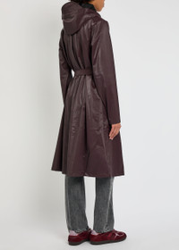 Info & Care Rains rubber jacket Available in patent and matte Waterproof, drawstring hood with peak, press-stud fastening cuffs, belt loops, detachable belt, side slip pockets, designer tag at side, inverted pleat through back Press-stud fastenings through front 100% polyester; coating: polyurethane Machine wash Size & Fit Length shoulder to hem: 41 inches/ 104cm Midweight A-line fit, use belt to cinch waist Model is 5'9"/ 175cm and wears a size small