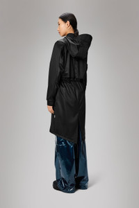 String W Parka takes cues from the iconic fishtail parka. Characterized by a luxe-sport aesthetic and drawstring fishtail hem in parka-length. String W Parka features a drawstring hood with built-in cap and coated zip closure. Under-arm eyelets and a back yoke with concealed vents ensures breathable comfort. The design is finished with minimal side-access pockets and a drawstring waist accentuated by a slim-line external cord tunnel. String W Parka is cut from Rains' signature PU fabric and features welded seams. The finish is lightweight with a soft feel and elegant drape. SKU: 18550\84 Details Composition: 100.00% PES (Polyester) Water column: 5000 mm Windproof: Protection against windchill Fit: Longer Weight: 20.5 oz Features - Waterproof signature PU fabric - Hood with built-in cap and drawstring - Coated zip closure including placket with snap fastenings - Two side pockets - Elasticated cuffs for a tighter fit around wrist - Fishtail hem with drawstring - Drawstring through external tunnel at waist - Vents at arm holes and back yoke - Welded seams - Casual fit