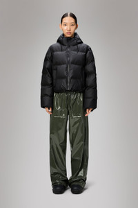 Alta Short Puffer Jacket is a waterproof winter jacket. Characterized by refined silhouettes and an easy-to-wear puffer aesthetic. The Alta Short Puffer Jacket is designed with an inside zipped chest pocket and concealed fleece-lined side pockets. As part of the Alta series, the look features signature chamber widths and pared-back details. The cropped silhouette is finished off with an insulated hood with drawstring, keeping you warm and comfortable in the coldest climates. This elevated puffer is built on woven chamber technology and cut from Rains' signature PU fabric with double welded seams. The finish is lightweight with a smooth feel. SKU: 15150\01 Details Composition: 100.00% PES (Polyester) Water column: 5000 mm Breathability: 3.000 g/m2 water vapor transmission Windproof: Protection against windchill Fit: Short Weight: 31.7 oz Features - Waterproof signature PU fabric - Insulated with signature chamber technology - Insulated hood with drawstring adjustment - 2-way coated zip closure with chinguard - Concealed fleece-lined side pockets - Internal zipped chest pocket - Concealed ribbed storm cuffs - Double welded seams - Rubberized weatherproof hardware - Cropped fit