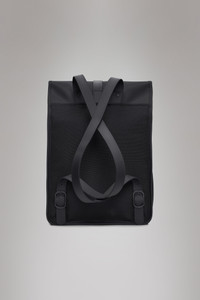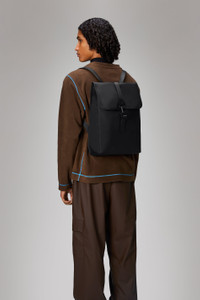 Rucksack embodies Rains' signature bag aesthetic. Silhouette is characterized by its prominent flap and central strap with carabiner closure. This clean and ever contemporary waterproof rucksack features a spacious main compartment and an internal pocket. The laptop pocket fits a 13" laptop with sleeve, making the Rucksack a computer-ready staple for campus or work. Rucksack is cut from Rains' signature PU fabric, engineered for carrying strength, durability and a smooth feel. SKU: 13500\01 Details Volume (liter): 3.6 gal
