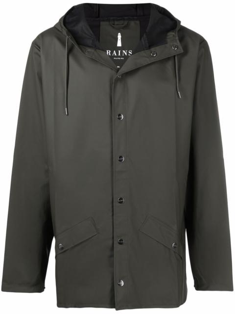 hooded pocket rain jacket Highlights - Navy - Button fastening - Front pockets - Drawstring hood Imported Composition Polyester 100% Washing instructions Machine Wash