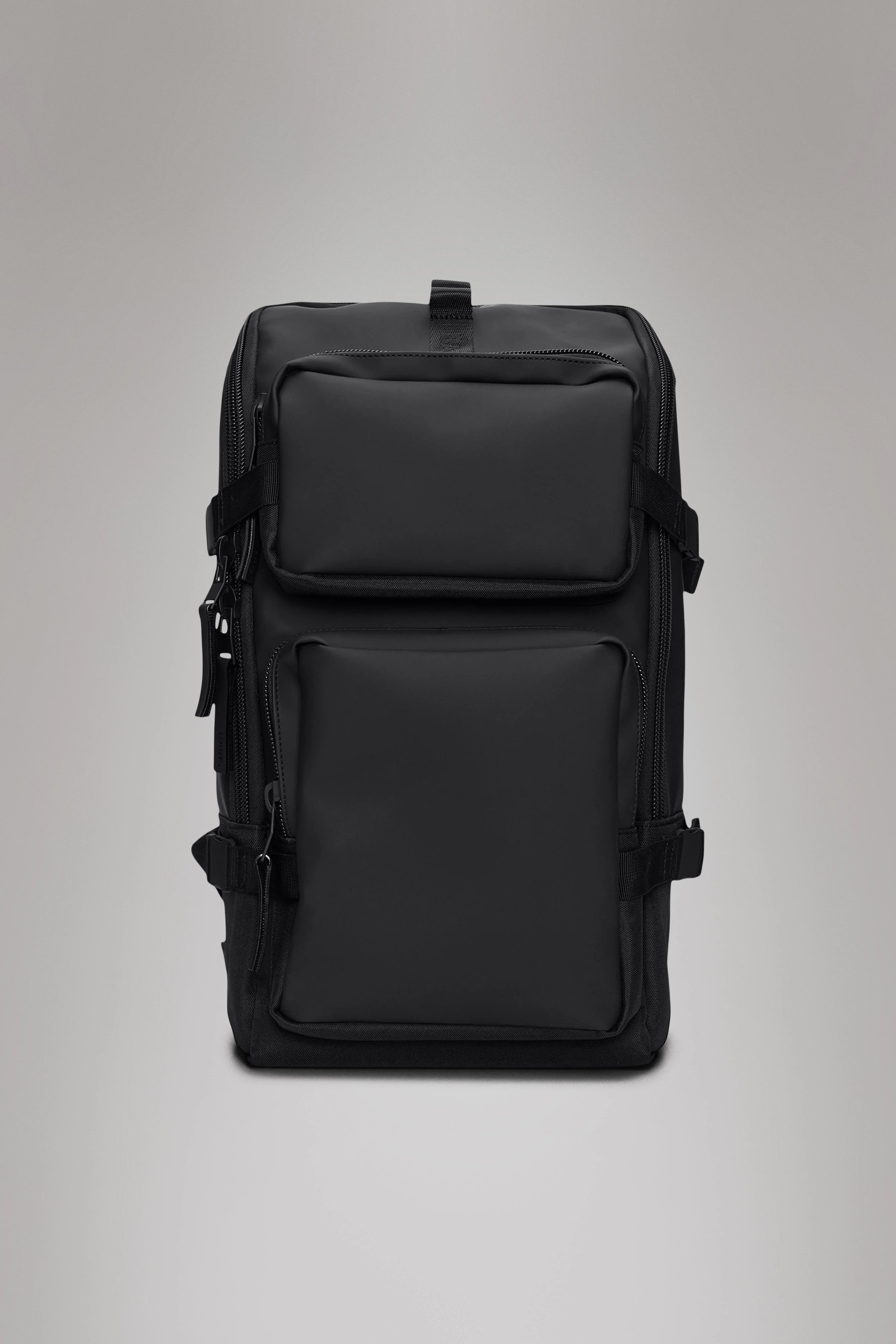 Trail Cargo Backpack is a take on the classic Trail Backpack, offering lots of features, functional details and outside pockets. The Trail Cargo Backpack features an internal laptop pocket, a spacious main compartment and two square front zip pockets, providing plenty of storage space. This design leans into the sports-utility mood of the Trail family. The laptop pocket fits a 13" laptop, making the Trail Cargo Backpack a perfect computer-ready staple. Trail Cargo Backpack is cut from Rains' signature PU fabric, engineered for carrying strength, durability and a smooth feel. SKU: 14330\01 Details Composition: 100.00% PES (Polyester) Water column: 8000 mm Weight: 31 oz Features - Waterproof signature PU fabric - Coated zip closure - Single main compartment - Two front zip pockets - Padded pocket fits 13" laptop - Padded mesh back panel - Two compression straps with buckles at sides - Webbing carry handle - Adjustable padded shoulder straps - Adjustable chest strap