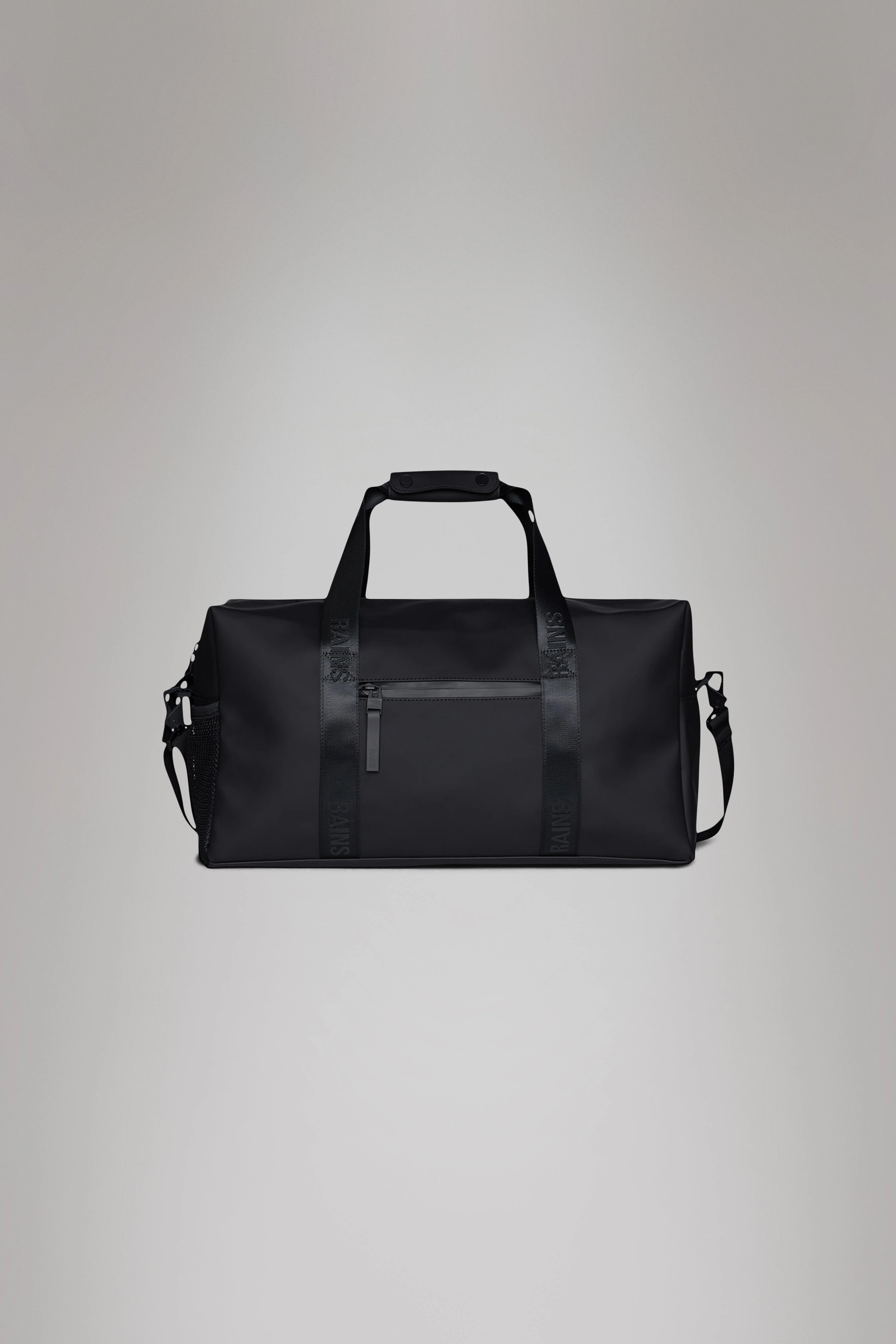Trail Gym Bag is designed for sporting demands, yet can double as mid-sized bag for short getaways. Characterized by a boxy silhouette and sporty details. This waterproof bag opens up to a spacious main compartment via a coated zipper. Features include a front zip pocket and side mesh pocket for external storage. This design leans into the sports-utility mood of the Trail family. It is finished with webbing carry handles and a detachable shoulder strap for various carrying options. Trail Gym Bag is cut from Rains' signature PU fabric, engineered for carrying strength, durability and a smooth feel. SKU: 14380\01 Details Volume (liter): 6.9 gal Composition: 100.00% PES (Polyester) Water column: 8000 mm Weight: 26.8 oz Features - Waterproof signature PU fabric - Coated tonal zip closure - Single main compartment - Front zip pocket - Side mesh pocket - Carry straps with handle wrap - Detachable, adjustable shoulder strap