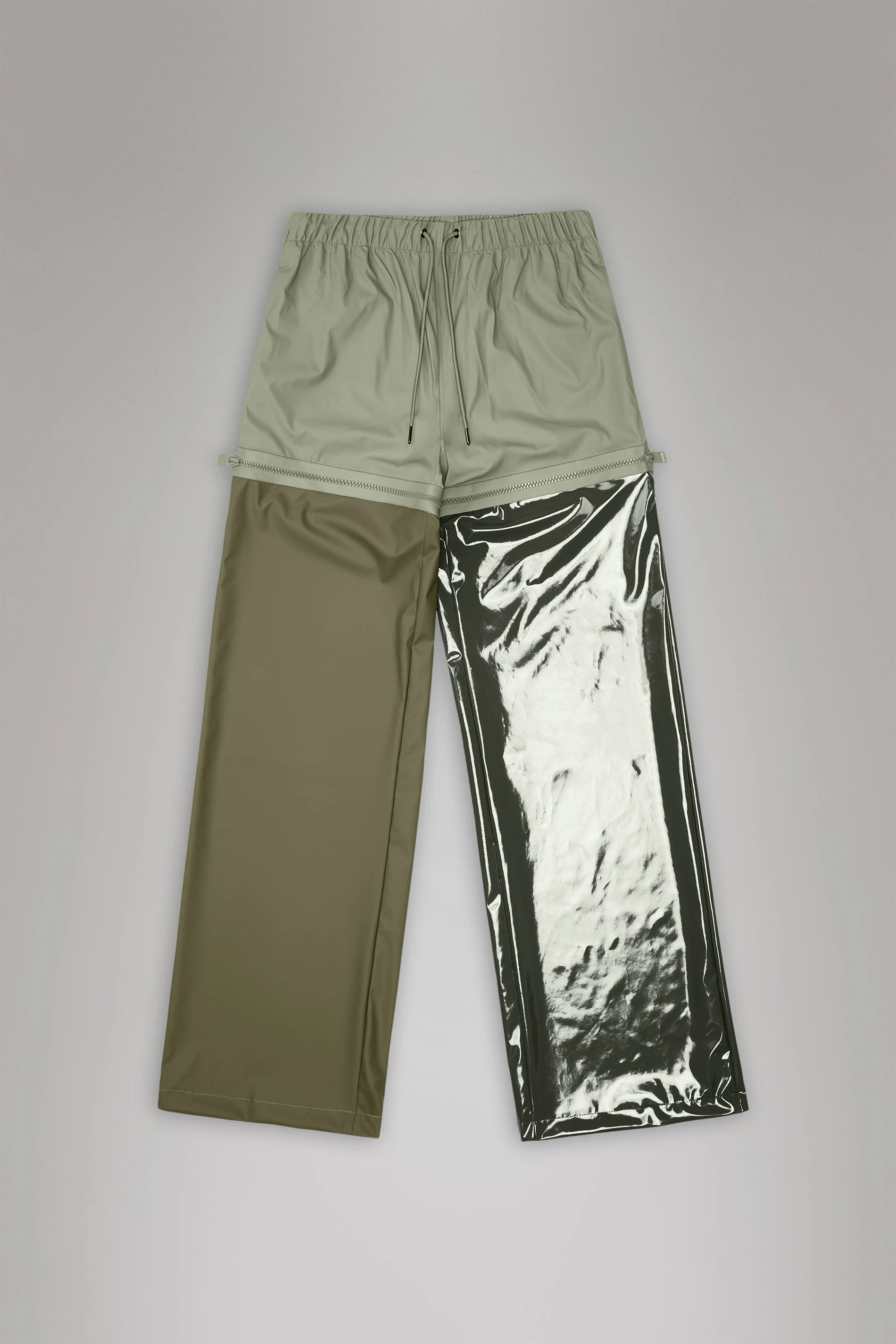 An experiment in deconstruction. Shown exclusively for FOREVER, our AW25 runway. Where the timeless balances with the extreme. The Vision Rain Zip Pants are lightweight wet-weather mainstays with a wide-leg fit and unique material expression. Designed to be worn alone or over your base layer for a fully weatherproof outfit. This isn't a fade-into-the-background option. The design features a full zip at each thigh—meaning it can be worn as shorts on warmer days. Crafted from our signature PU material in different finishes and with welded seams, expect breathable protection while expressing a louder aesthetic. There are plenty of functional touches for days on-the-go. You'll find a secure back pocket, slip-in pockets on either side and a tie cord at the waist to create your perfect fit. SKU: 27020\108 Details Composition: 100.00% PES (Polyester) Fit: Wide Weight: 16.2 oz Features: