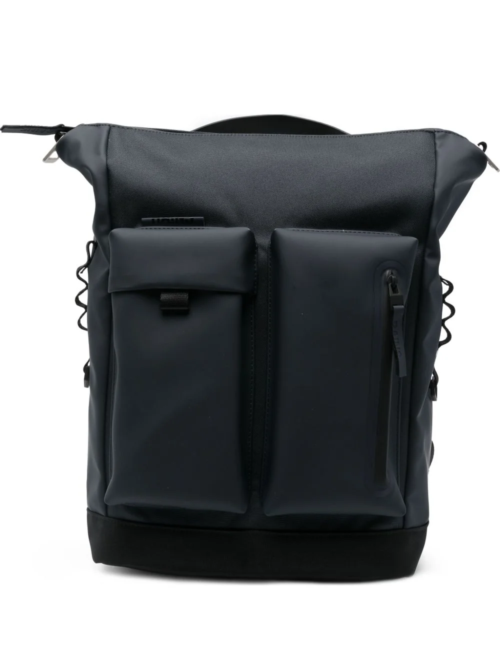 waterproof pocket backpack Highlights - Navy blue - Two front pockets - Zip fastening - Top handle - Adjustable shoulder straps Imported Composition Lining: Polyester 100% Outer: Polyurethane 100% SIZE & FIT Model measurements Height 6 ft 2 in(1.89 m) Bust/Chest 34.25 in(87 cm) Hips 34.25 in(87 cm) Waist 27.95 in(71 cm)