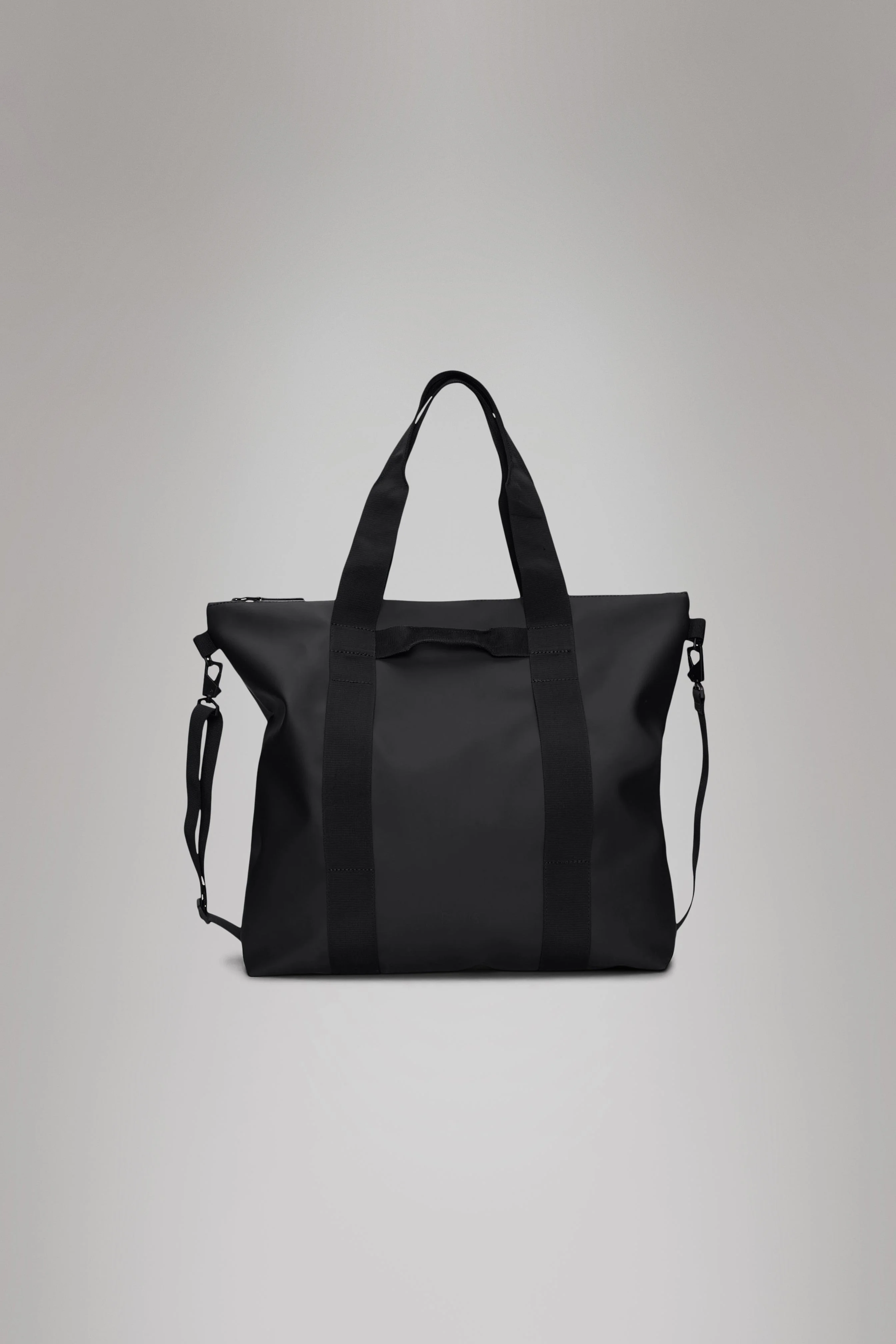 Tote Bag is a waterproof tote perfect for shopping, commutes or the office. Characterized by an elevated utility-look and functional details. The full-length coated zip reveals a spacious main compartment and a zip pocket for small items. Designed to meet your carry-needs, Tote Bag offers various carrying options through its detachable shoulder strap, long hand/shoulder handles and side-mounted grab handle. Carry handles feature attachment rings for small items like keys. Tote Bag is cut from Rains' signature PU fabric, engineered for carrying strength, durability and a smooth feel. SKU: 14150\01 Details Volume (liter): 6.1 gal Composition: 100.00% PES (Polyester) Water column: 8000 mm Weight: 25.4 oz Features - Waterproof signature PU fabric - Coated tonal zip closure - Single main compartment - Internal zip pocket - Long hand/shoulder webbing handles with attachment ring - Side-mounted webbing grab handle - Detachable webbing shoulder strap