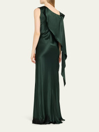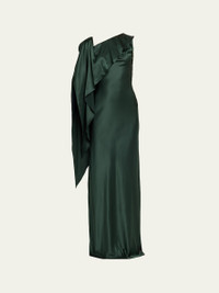 Crafted from lustrous stretch silk, the "Lizzie" gown by Ralph Lauren features a draped ruffle detail Asymmetric neckline Sleeveless Full length Column silhouette Silk/elastane Made in Italy