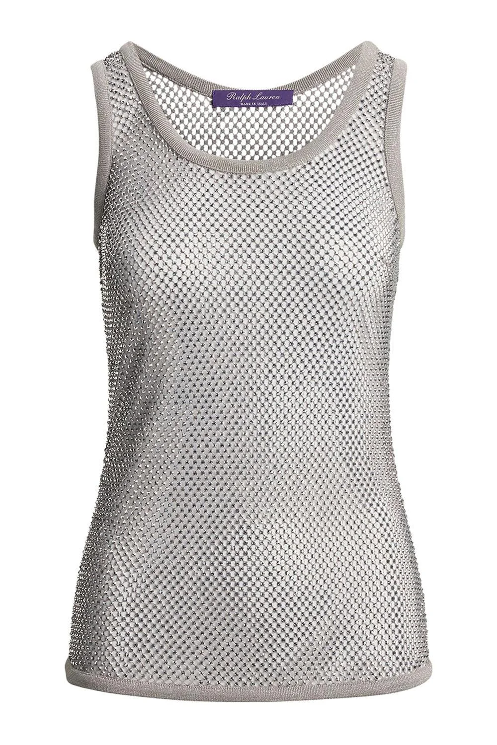 DETAILS AND INSIGHT Ralph Lauren melony embellished tank top in silver. Camisole: 93% Viscose 7% Elastane Dry Clean Made In Italy Style 290972368002-2WAD