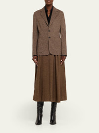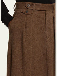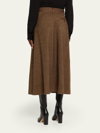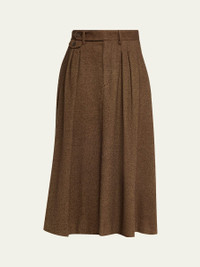 Ralph Lauren skirt is crafted from birdseye tweed, finished with pleating and a buttonflap pocket on the hip High waist Angled side slip pockets Back buttonwelt pocket Aline silhouette Hem falls below the knee Buttontab/zip fly; belt loops Wool Made in Romania