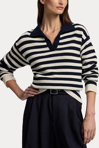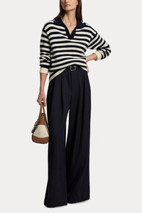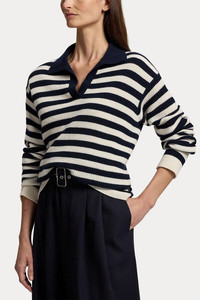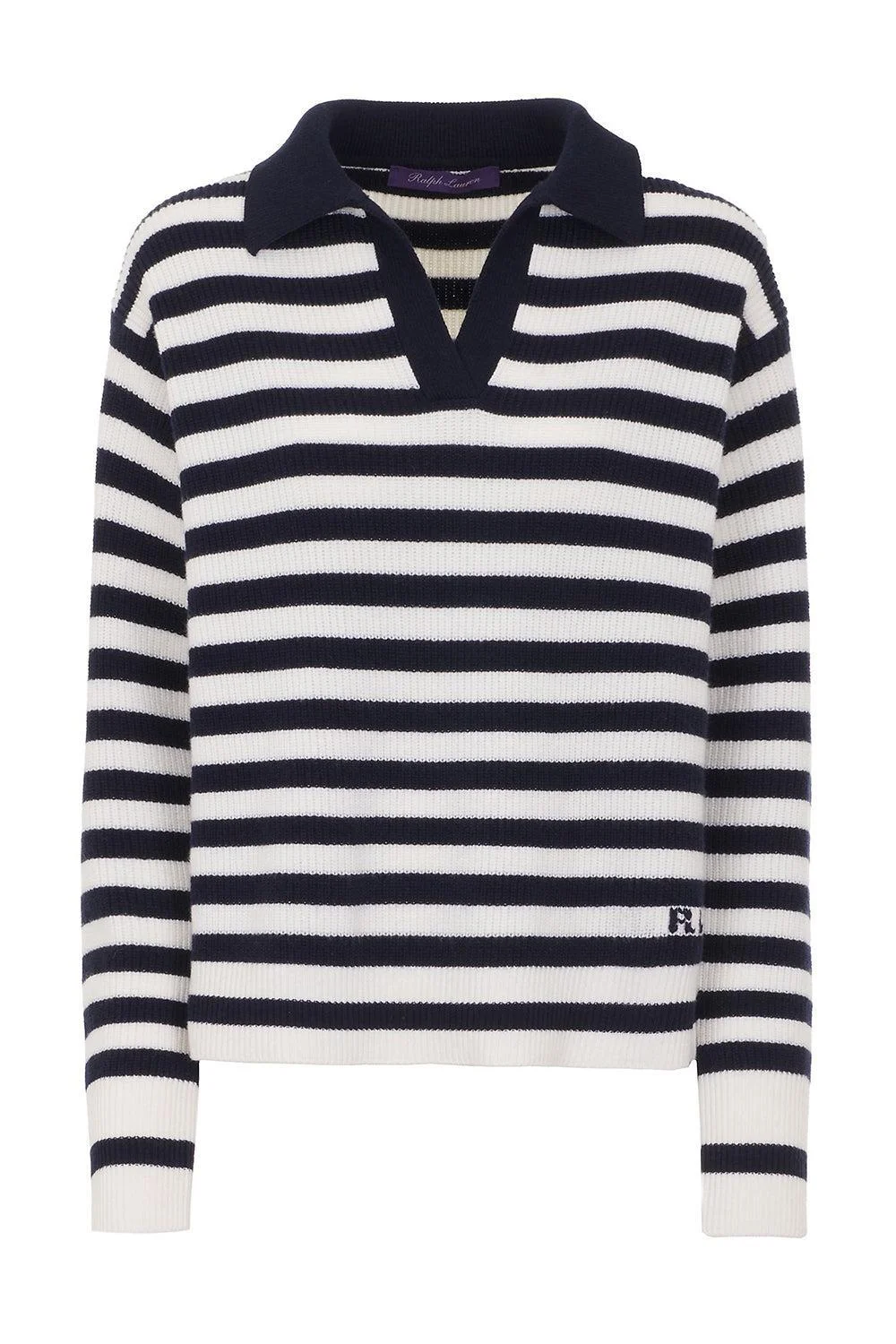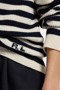 DETAILS AND INSIGHT Ralph Lauren polo pullover sweater in cream/icon navy. 100% Cashmere (Exclusive Of Elastane) Dry Clean Made In Italy Style 290P08711001-48R3