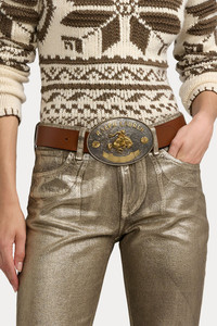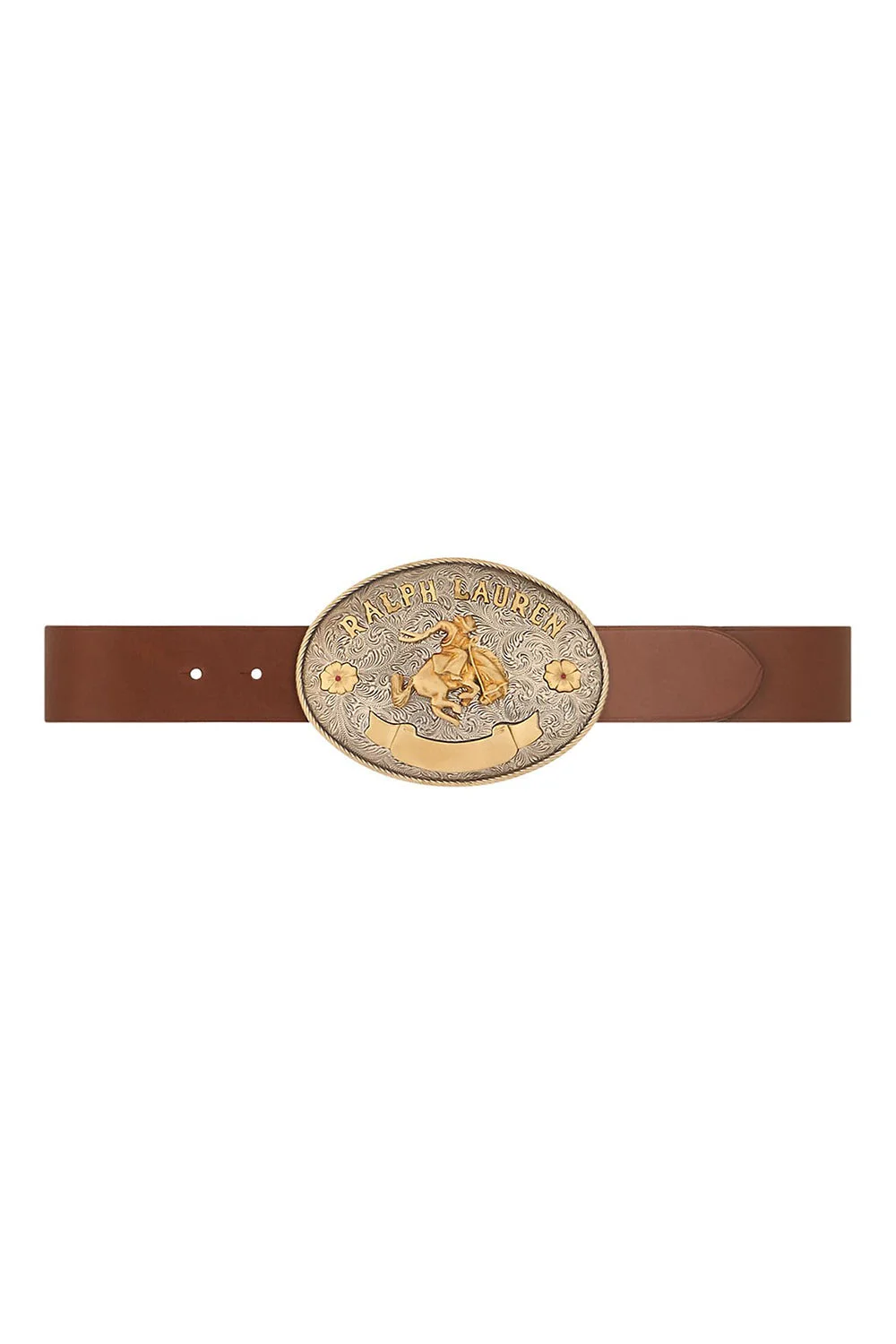 DETAILS AND INSIGHT Ralph Lauren rodeo-buckle wide belt in brown. 100% Leather Made In Italy Style 408922480002-RL BROWN