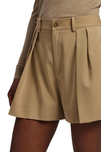 DETAILS AND INSIGHT Ralph Lauren sherri short in tan. Traditionally Tailored With Crisp Creases, Pleats, And Darts, The New-Season Sherri Short Is Cut For A Mid-Rise And Features Side On-Seam Pockets And A Buttoned Besom Pocket. Crafted In Italy, This Essential Style Is Made With Wool Gabardine In A Compact Weave Specially Selected For Its Structured Form And Stunning Drape. 100% Wool Dry Clean Made In Italy Style 290P00395001-2WCD
