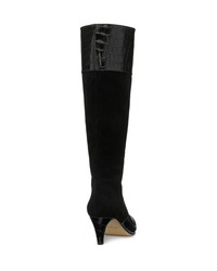 Say hello to your new power boot. The Cassie is a striking knee-high style with contrasting leather at the top and your choice of smooth suede or snake-print leather shaft. The pointed toe and slim heel create an ultra-elongating silhouette. Ramy Brook’s Fall 2025 Boot Collection features Portugal-crafted leather and suede boots—luxurious, versatile, and designed to complete every fall outfit. Details & Care – Suede or snake-print leather with contrast leather on top of boot, toe, and heel – Zipper on inside ankle – Knee high – Slim heel – Pointed toe – Suede: Upper: 70% Suede 30% Leather, Lining: 100% Leather – Leather: 100% Leather, Lining: 100% Leather – Heel height: 3.5" – Made in Portugal – Style #: F08259003 – View Size Guide