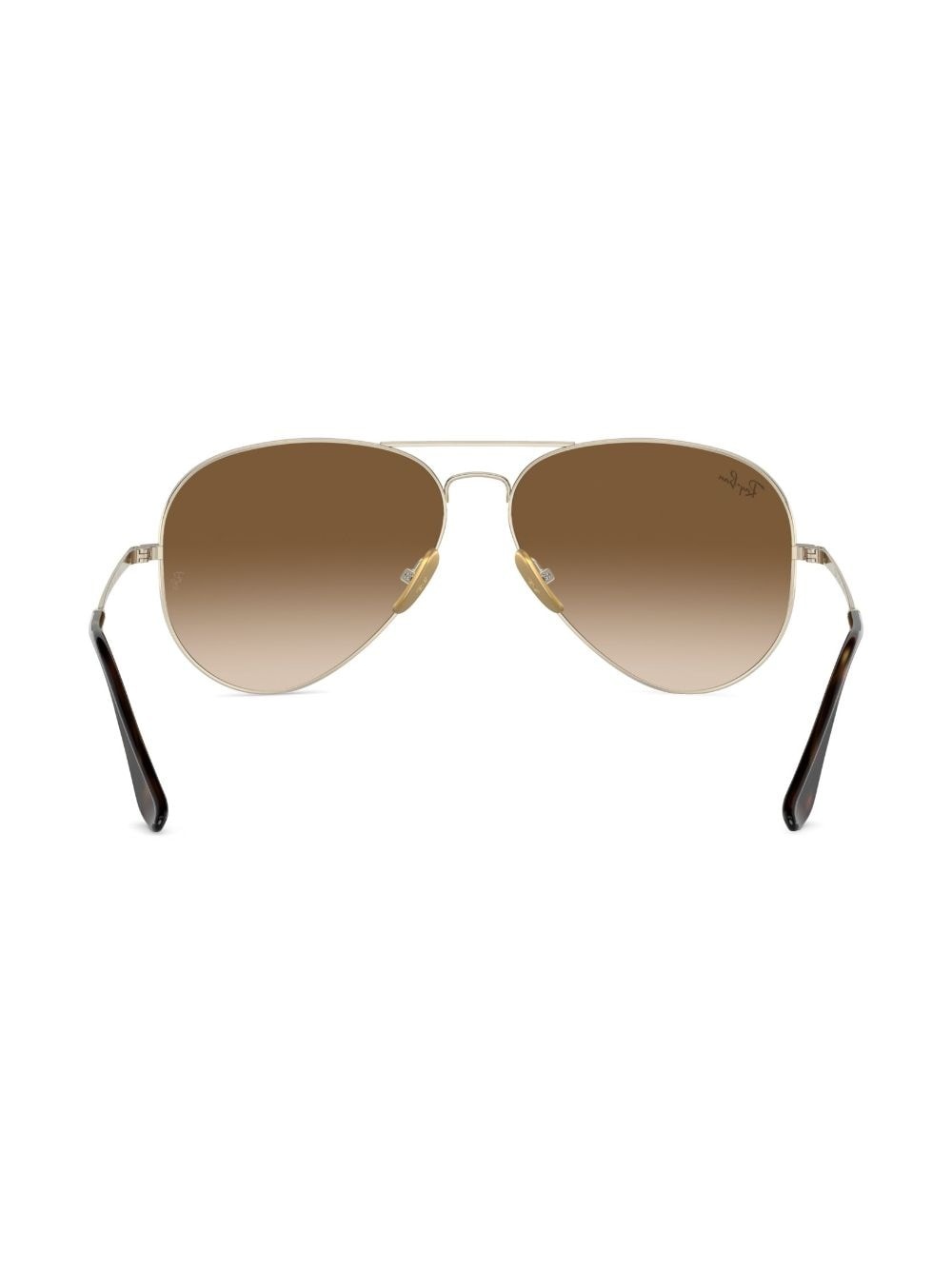 Aviator gradient sunglasses Highlights - Gold-tone - Gradient lenses - Uv protection - Logo print to the front - Signature ray-ban aviator frame - Raised bridge - Nose pads - Straight arms - Curved tips - These glasses come with a protective case. Made in United States Composition Titanium 100% SIZE & FIT Measurement Arm Length 5.31 in(13.5 cm) Bridge Width 0.55 in(1.4 cm) Lens Diameter 2.28 in(5.8 cm)