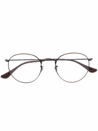 matte-effect round-frame glasses dark brown metal matte effect clear lenses round frame raised bridge straight arms curved tips These glasses come with a protective case. Made in Italy Composition Metal 100% SIZE & FIT Measurement Arm Length 5.7 in(14.5 cm) Bridge Width 0.82 in(2.1 cm) Lens Diameter 1.96 in(5 cm) Total Width 5.11 in(13 cm)