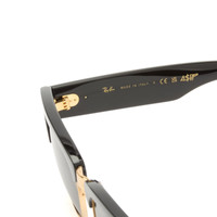 The Ray-Ban x A$AP Rocky Mega Clubmaster sunglasses fuse iconic heritage with cutting-edge style. Part of the exclusive Blacked Out collection, this reimagined Clubmaster takes cues from its ‘80s roots and Rocky’s fearless fashion influence. The amplified brow line and oversized temples command attention, while the polished black design with gold details brings an elevated look. A fusion of Ray-Ban legacy and A$AP Rocky’s visionary style, built for modern trendsetters. - Propionate Frames - Square Frames - Oversized Temples - Gold Plated Accents - Branded Details - Product Code: 0RB0316S-53-6826J5