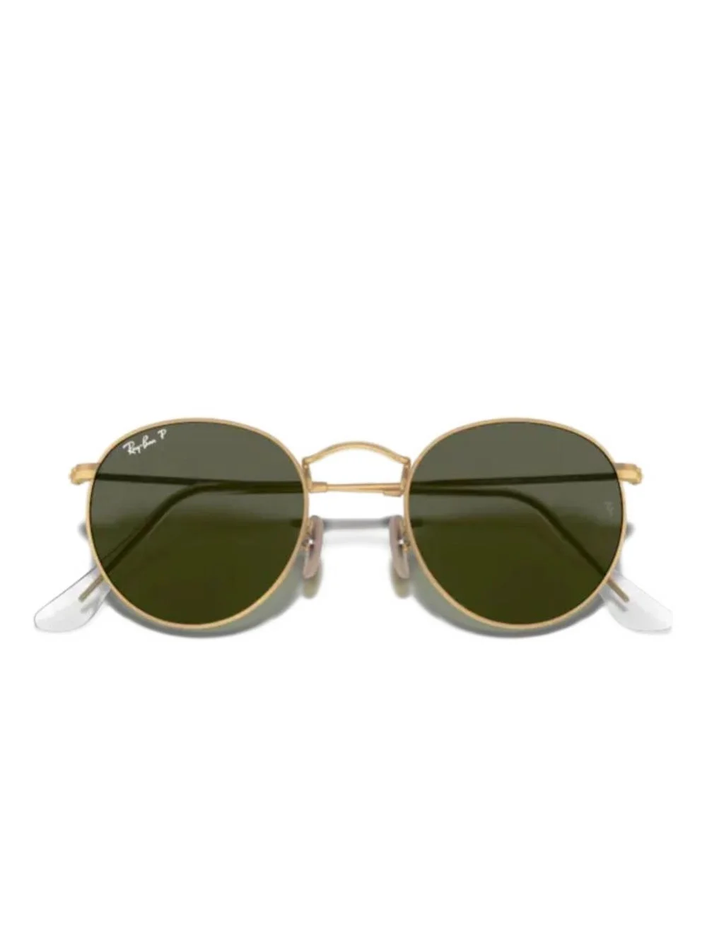RB3447 sunglasses Highlights - Gold-tone - Grey tinted lenses - Polarised lenses - Uv protection - Round frame - Nose pads - Straight arms - Curved tips - These glasses come with a protective case. Made in Italy Composition Acetate 100%, Metal 100% SIZE & FIT Measurement Bridge Width 0.82 in(2.1 cm) Lens Diameter 1.96 in(5 cm) Total Width 4.92 in(12.5 cm) Arm Length 5.7 in(14.5 cm)