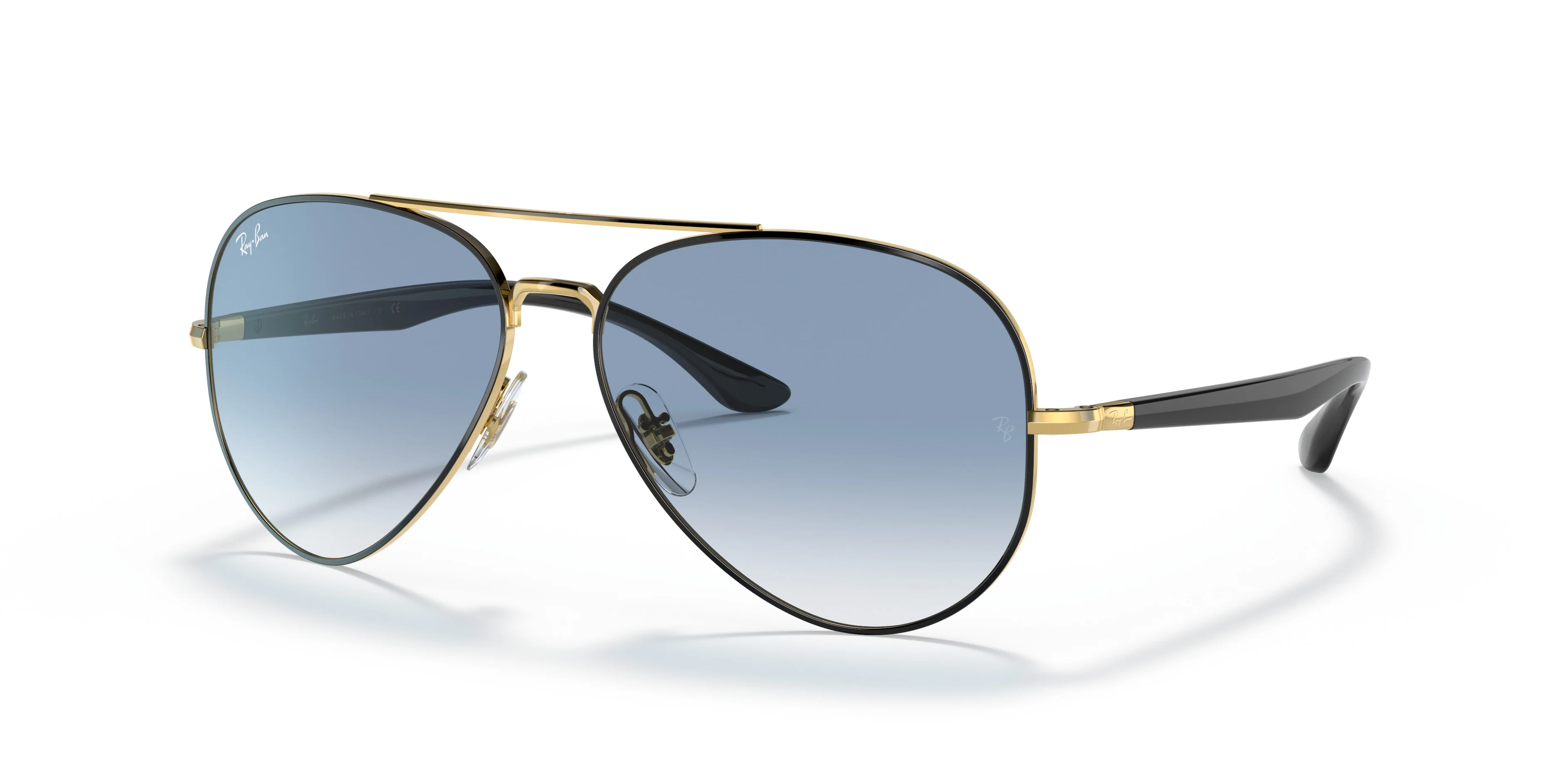 MODEL CODE RB3675 90003F 58-14 FRAME DESCRIPTION FRAME SHAPE Pilot FRAME COLOR Polished Black On Gold FRAME MATERIAL Metal TEMPLE COLOR Black LENS INFORMATION LENS COLOR Light Blue TREATMENT Gradient PRODUCT DIMENSIONS HINGE TO HINGE 137 mm LENS HEIGHT 51 mm BRIDGE WIDTH 5814 mm TEMPLE LENGTH 135 mm FITTING FITTING Regular BRIDGE & NOSEPADS Adjustable Nosepads