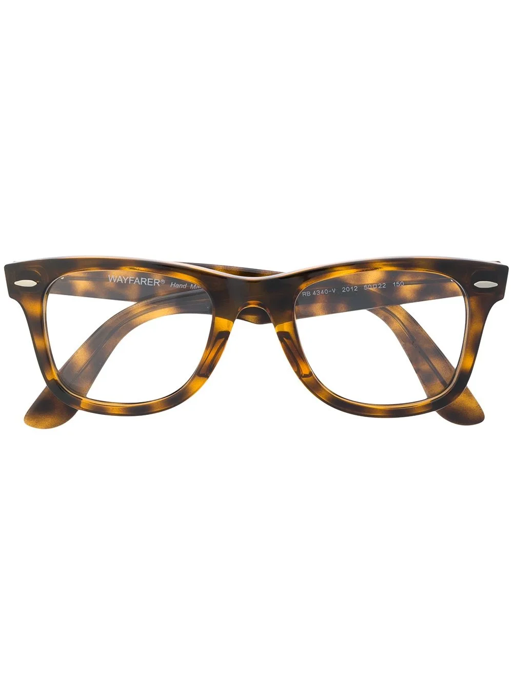 RB4340V Wayfarer Ease tortoiseshell glasses Brown acetate RB4340V Wayfarer Ease tortoiseshell glasses from Ray-Ban featuring a brand logo on external arm. This item comes with a protective case. Made in Italy Composition Acetate 100% SIZE & FIT Measurement Arm Length 5.9 in(15 cm) Bridge Width 0.86 in(2.2 cm) Lens Diameter 1.96 in(5 cm) Total Width 5.55 in(14.1 cm)