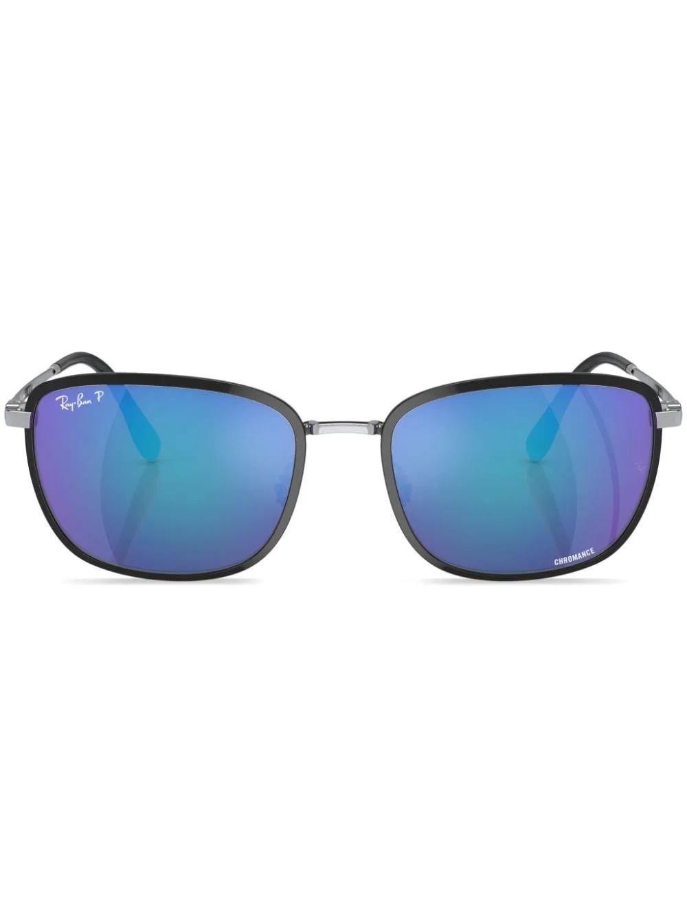 tinted-lenses square-frame sunglasses Highlights - Black - Lens decal - Square frame - Gradient effect - Nose pads - Straight arms - Curved tips - These glasses come with a protective case. Made In United States Composition Metal 100%