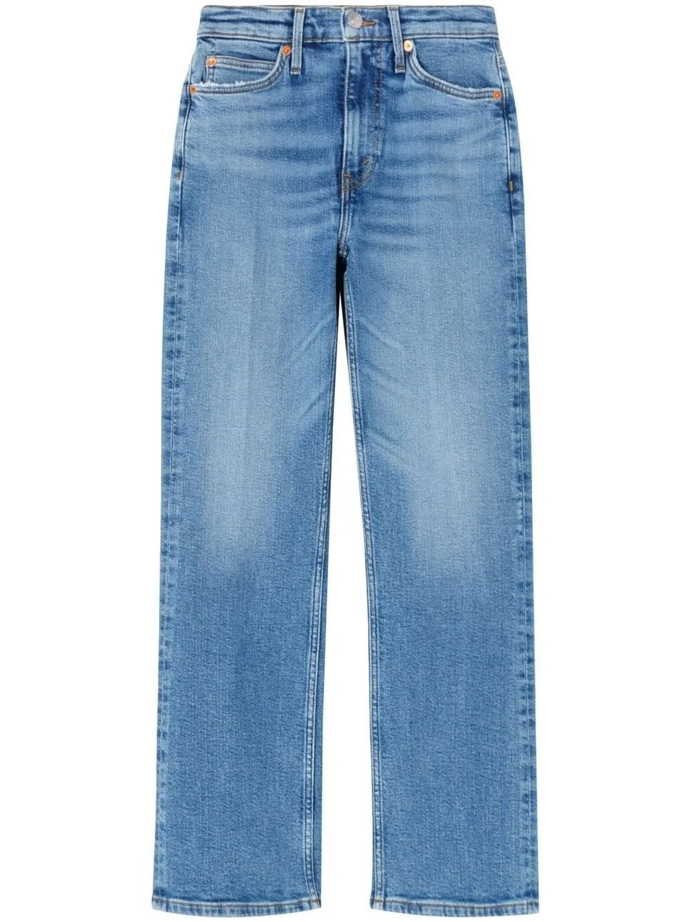 70s cropped boot jeans RE/DONE reimagines classic denim for the modern day. Featuring light whiskering, this pair has cropped ankles and bootcut hems that riff on ‘70s styles. Highlights - Light blue - Cotton blend - Washed denim - Whiskering effect - Belt loops - Front button and zip fastening - Classic five pockets - Bootcut Imported Composition Cotton 96%, Polyester 3%, Elastane 1% Washing instructions Machine Wash