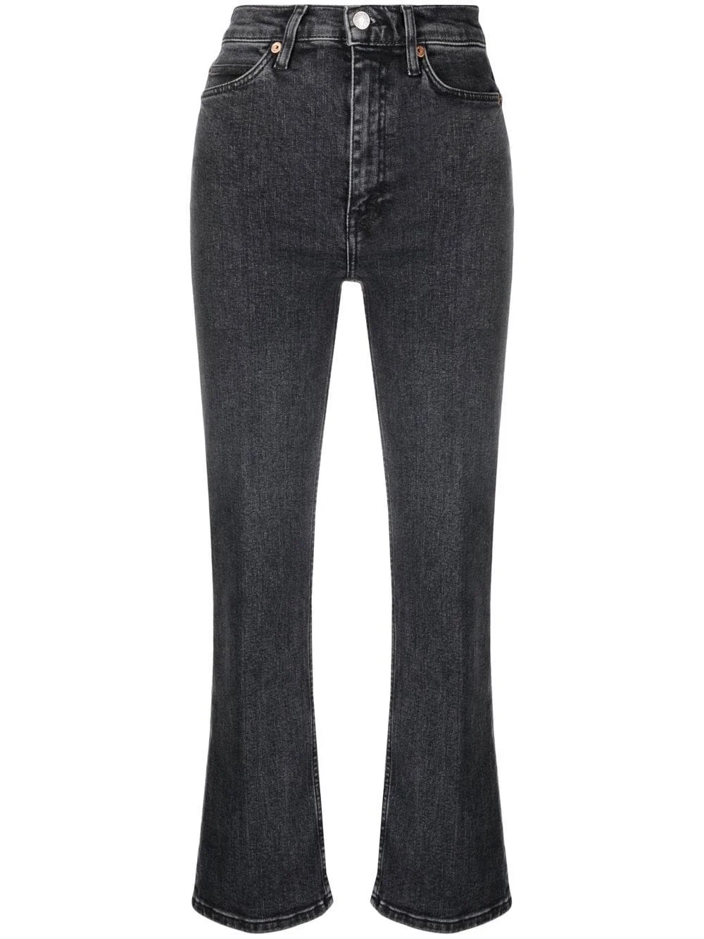 70s Bootcut flared jeans Highlights - Black - Cotton blend - Bootcut - High-waisted - Cropped - Front button and zip fastening - Belt loops - Classic five pockets Imported Composition Outer: Cotton 97%, Spandex/Elastane 3% Lining: Polyester 65%, Cotton 35% SIZE & FIT Model measurements Height 5 ft 10 in(1.77 m) Bust/Chest 32.28 in(82 cm) Hips 34.64 in(88 cm) Waist 24.4 in(62 cm) FittingInformation This piece fits true to size. We recommend you get your regular size Designed to be fitted at the waist and hips, loose over the leg Made with a mid-weight stretch fabric Washing instructions Machine Wash