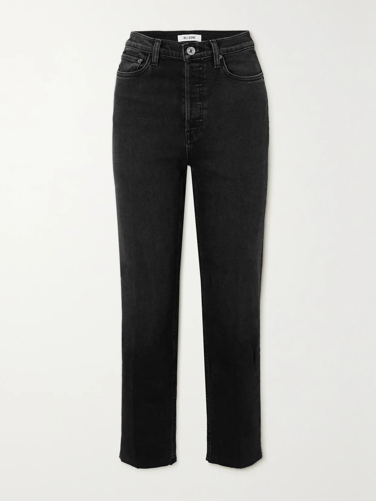 RE/DONE's '70s Stove Pipe' jeans are cut from rigid black denim that's faded and distressed at the knees for an authentically vintage look. They have a flattering high-rise waist and straight legs that are cropped just above the ankles. Wear yours with everything from relaxed tees to chunky knits.