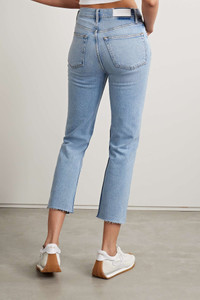 EDITORS'NOTES RE/DONE'S 'Originals' are inspired by great vintage finds, but they fit and feel as good as new. This straight-leg 'Stove Pipe' pair is made from classic light-blue denim cut in a flattering high-rise reminiscent of '70s styles. Wear them with your favorite sneakers. SIZE & FIT - Fits true to size, take your normal size - High-rise, cut for a straight-leg fit - Mid-weight, slightly stretchy fabric - Size 26 jeans have an inside leg of 27”/ 69cm - Model is 177cm/ 5'10" and is wearing a size 26 DETAILS & CARE - Light-blue denim - Partially concealed button fastenings along front - 96% cotton , 3% polyester, 1% elastane; lining: 65% polyester, 35% cotton - Machine wash - Designer wash: Mid 90s