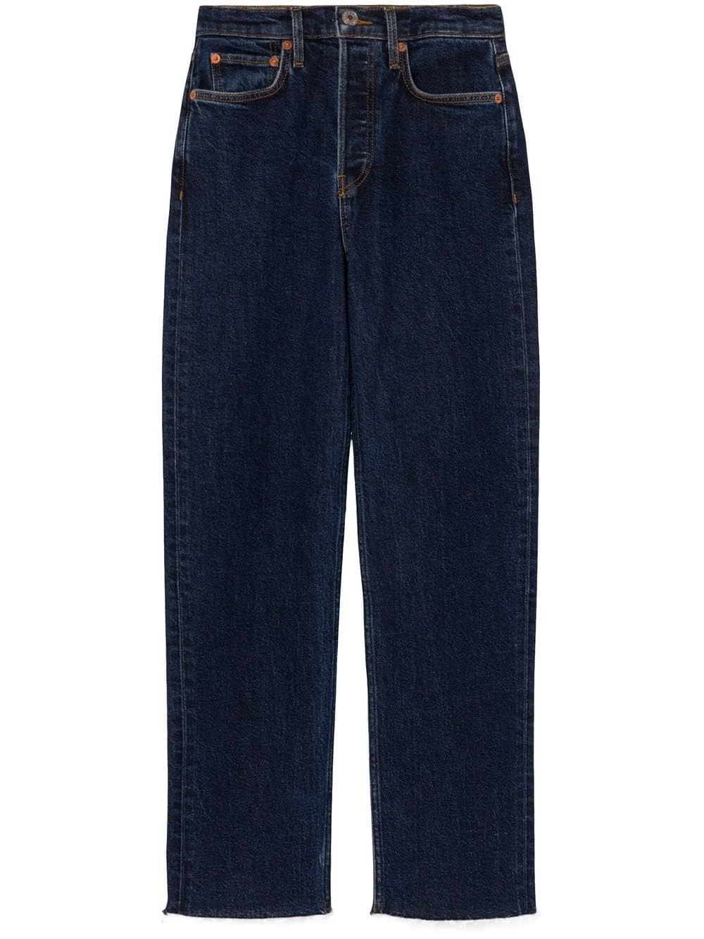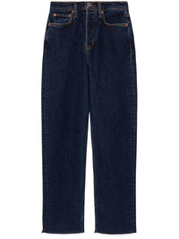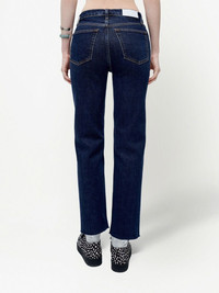 '70s Stove Pipe mid-rise jeans Highlights - Blue - Cotton blend - Slim cut - Mid-rise - Logo patch to the rear - Belt loops - Concealed fly and button fastening - Classic five pockets - Cropped Made in Italy Composition Cotton 96%, Polyester 3%, Elastane 1% SIZE & FIT Measurement FRONT RISE 12.2 in(31 cm) HIPS 34.64 in(88 cm) WAIST 29.13 in(74 cm) Washing instructions Machine Wash