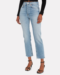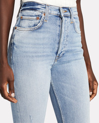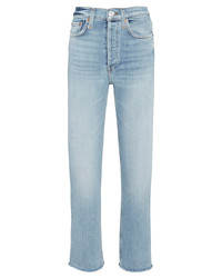 Product Details RE/DONE's cult-favorite Stove Pipe jeans showcase a classic straight-leg silhouette in their Light Stone denim. Belt loops. Zip fly and button closure. Five pocket styling. Fit information: - High-rise - Straight-leg silhouette - Stretch denim Details: - Fabric: 96% cotton, 3% polyester, 1% elastane - Lining: 65% polyester, 35% cotton - Machine wash cold - Imported - Model is 5'10" and wearing size 26 - Rise: 10.25" - Inseam: 27.25"