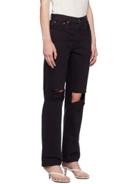 Loose-fit non-stretch denim jeans. Fading and subtle distressing throughout. · High-rise · Belt loops · Five-pocket styling · Button-fly · Rip at knees · Logo patch at back waistband · Logo-engraved bronze-tone hardware Supplier color: Washed black with rips 100% cotton. Made in Mexico 242800F069000