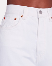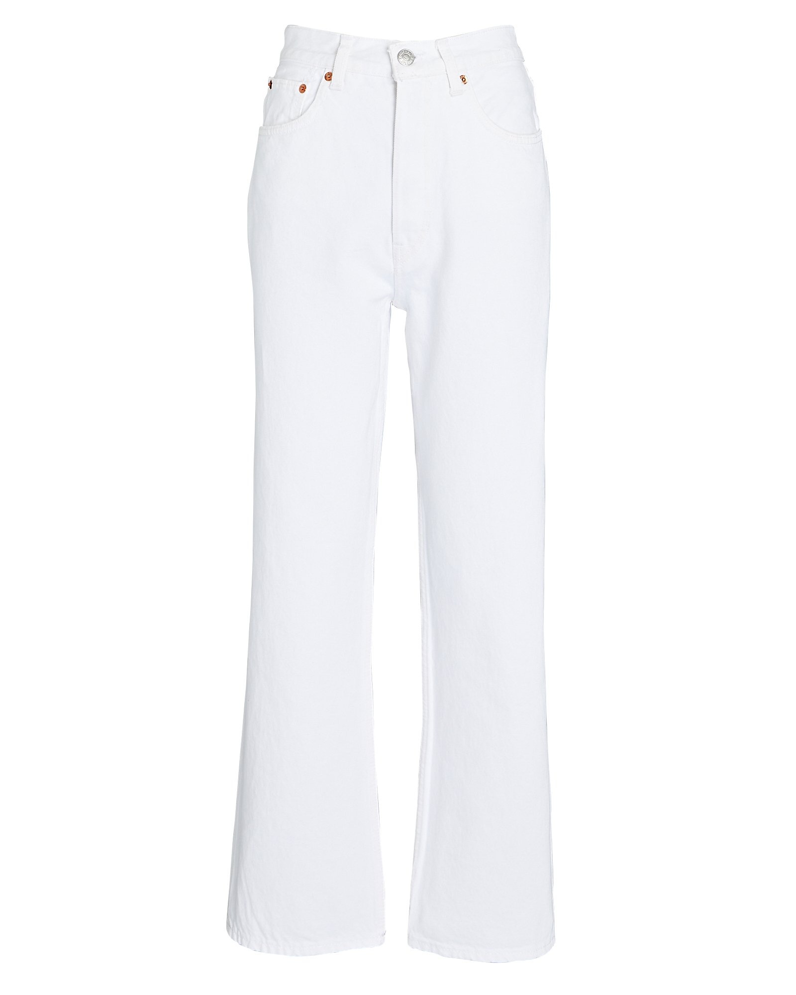 Product Details RE/DONE is our go-to for flattering denim that oozes charm from decades past. This '90s-inspired pair in pristine white denim is designed to sit high on your waist or slung low for a relaxed fit. Belt loops. Five pocket styling. Fit information: - Ultra high-rise - Straight-leg silhouette - Rigid, non-stretch denim Details: - Fabric: 100% cotton - Button fly - Machine wash cold - Imported - Rise: 12" - Inseam: 29" - Leg opening: 16" - Model is wearing size 26 - Model height 5'11", bust 33", waist 24.5", hips 34.5"
