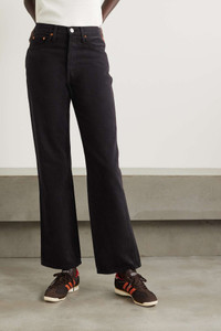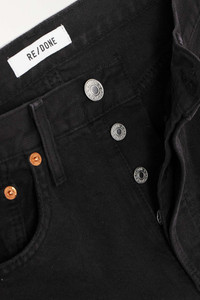 EDITORS'NOTES RE/DONE is renowned for its attention to detail and immaculately cut denim. These '90s Loose' jeans sit high on the waist, skimming the thighs before hitting just above the ankles. Refrain from washing them for as long as possible to keep the rigid denim and deep color in tact. SIZE & FIT - Fits true to size, take your normal size - High-rise, cut for a straight-leg fit - Mid-weight, non-stretchy fabric - Size 26 jeans have an inside leg of 31.6”/ 81cm - Model is 177cm/ 5'10" and is wearing a size 26 DETAILS & CARE - Black denim - Partially concealed button fastenings along front - 100% cotton - Machine wash