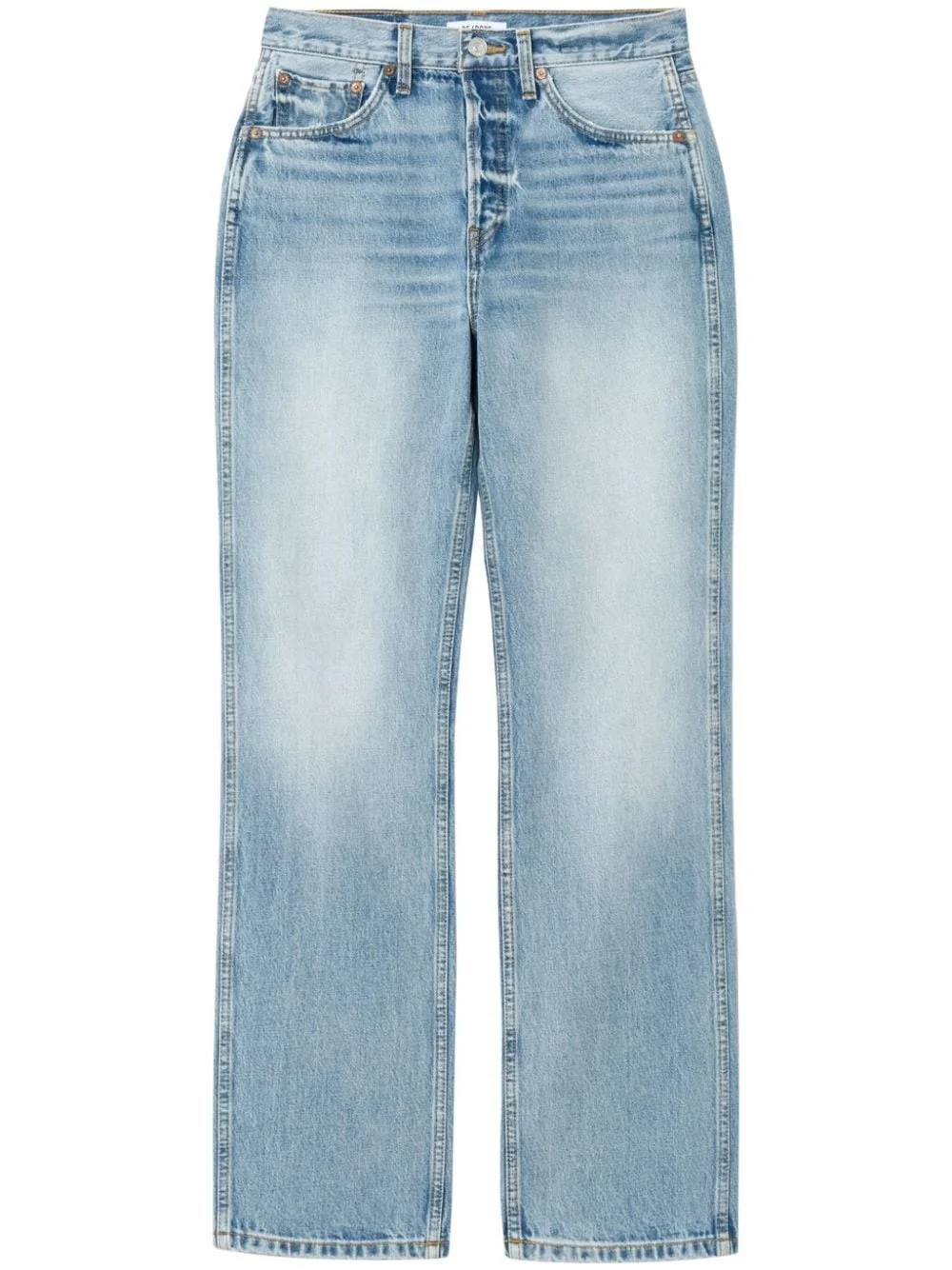 high-rise loose jeans Highlights - Light blue - Cotton - Denim - Concealed fly and button fastening - High-rise - Belt loops - Classic five pockets - Straight leg Made in United States Composition Body: Cotton 100% SIZE & FIT Measurement INSIDE LEG 31.88 in(81 cm) FRONT RISE 12 in(30.5 cm) HIPS 43.11 in(109.5 cm)