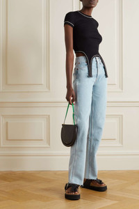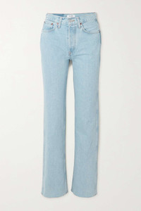 EDITORS'NOTES RE/DONE's jeans are designed in a straight-leg shape that was super popular in the '90s. Made from rigid denim, they sit high on the waist and have a buttoned fly fastening and lived-in sky-blue wash. Style yours with everything from graphic tees to chunky knits. SIZE & FIT - Fits true to size, take your normal size - High-rise, cut for a straight-leg fit - Mid-weight, non-stretchy fabric - Size 26 jeans have an inside leg of 31.1”/ 79cm - Model is 175cm/ 5'9" and is wearing a size 26 DETAILS & CARE - Sky-blue denim - Partially concealed button fastenings along front - 100% cotton; lining: 65% polyester, 35% cotton - Machine wash - Designer wash: Naf