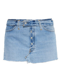 button-fastening frayed denim skirt Highlights - Light blue - Frayed hem - Button fastening - A-line shape - Five-pocket styling Imported Composition Fabric 100% Washing instructions Read Manufacturer Guidelines