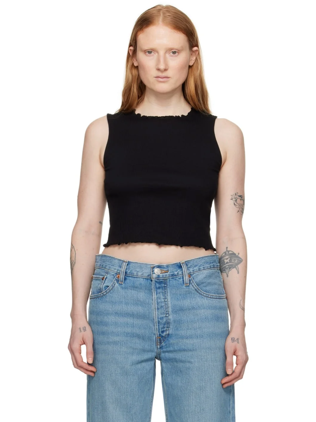 Cotton jersey tank top. Shirring throughout. · Round neck · Lettuce edge at collar and cropped hem Supplier color: Black 100% cotton. Made in Portugal 241800F111008