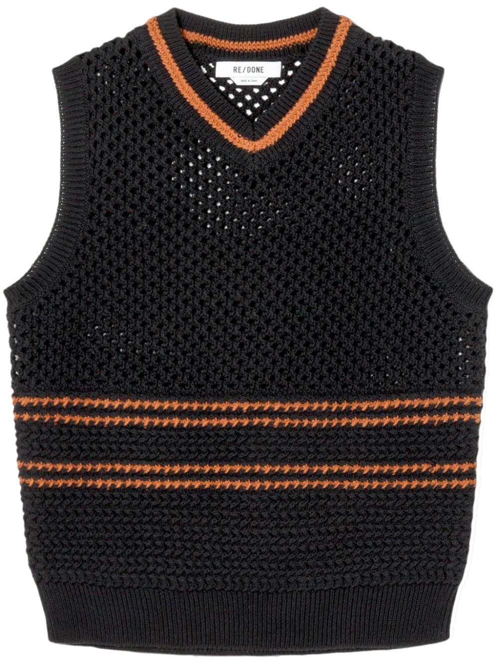 crocheted cotton vest Highlights - Black - Cotton - Crochet - Stripe detailing - Ribbed trim - V-neck - Sleeveless - Straight hem Imported Composition Cotton 100%