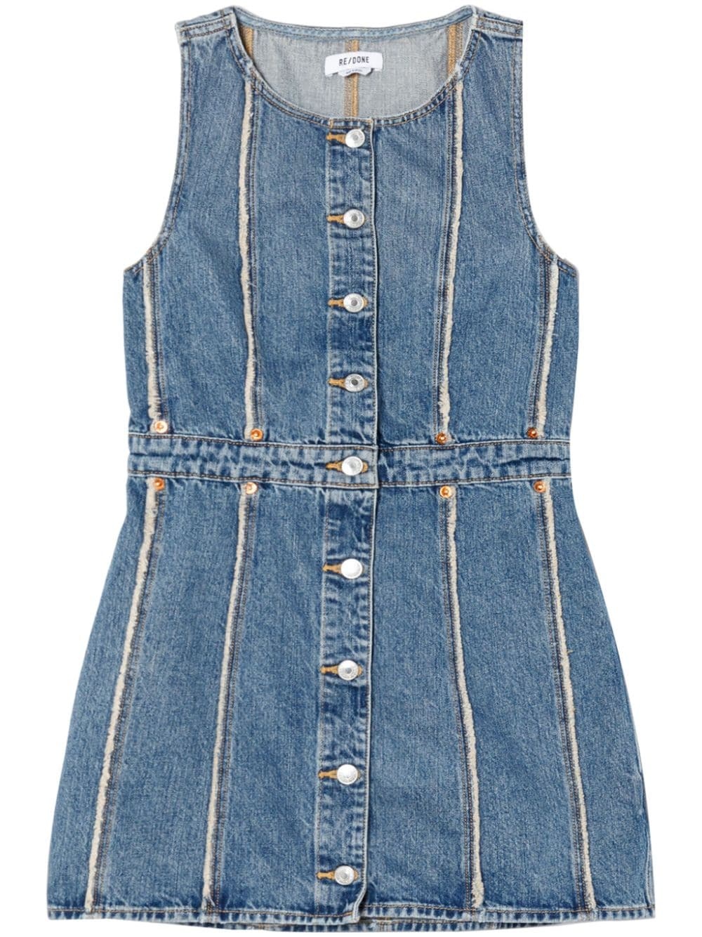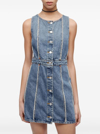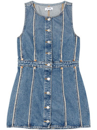 frayed denim minidress Highlights - Indigo blue - Cotton - Denim - Frayed detailing - Rivet detailing - Round neck - Front button fastening - Sleeveless - Straight hem - Thigh-length Imported Composition Cotton 100%