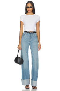 High Rise Wide Leg Cuff Jeans