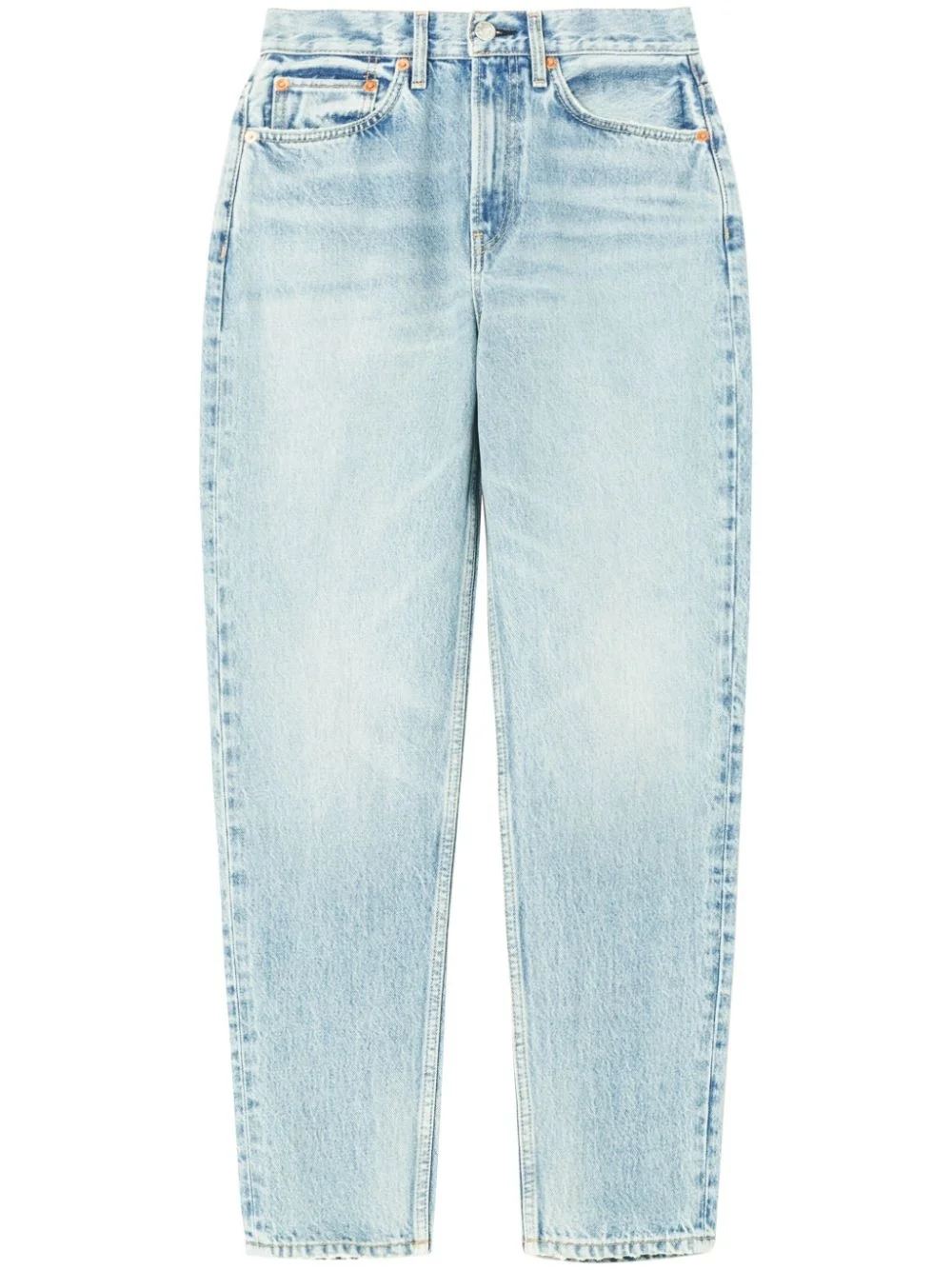 logo-patch tapered jeans Highlights - Light blue - Organic cotton - Denim - Logo patch to the rear - Front button and zip fastening - Belt loops - Classic five pockets - Tapered leg Imported Composition Organic Cotton 100% Washing instructions Machine Wash