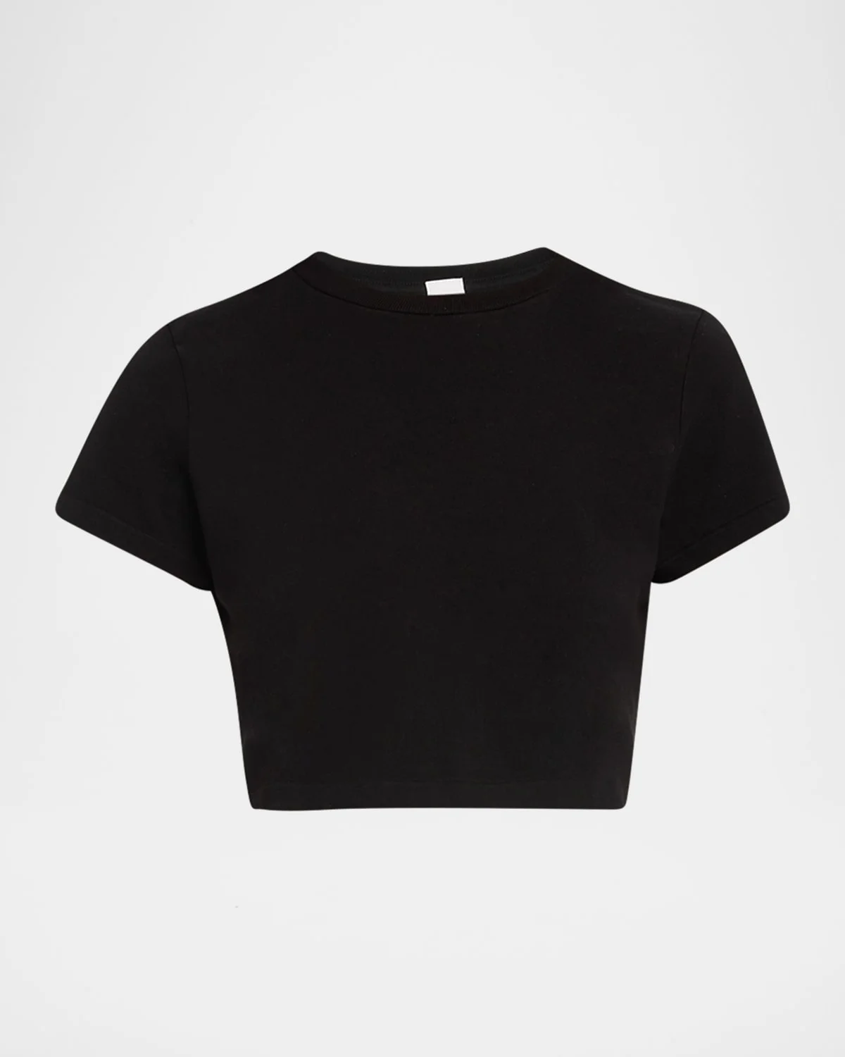 RE/DONE cropped cotton micro tee Crew neckline Short sleeves Slim fit Hem sits at the waist Pullover style Cotton Machine wash Made in USA