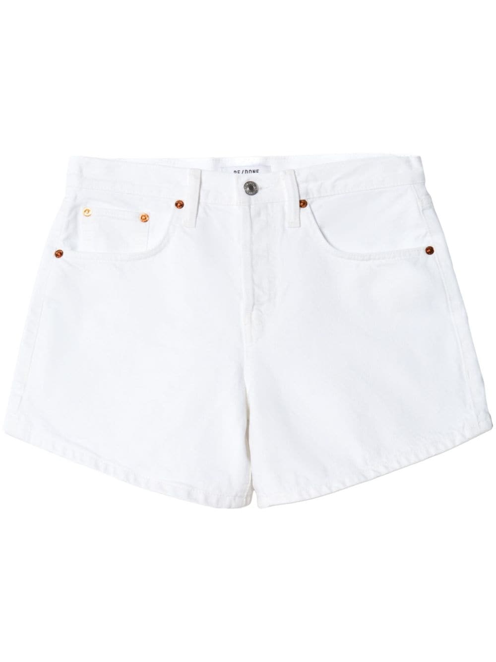 mid-rise denim shorts Highlights - White - Cotton - Denim - Appliquã© logo - Mid-rise - Belt loops - Concealed fly and button fastening - Classic five pockets - Thigh-length Imported Composition Cotton 100%