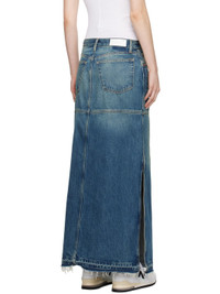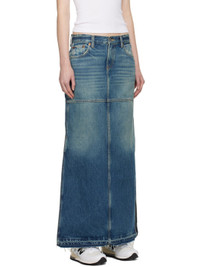 Non-stretch denim skirt. Fading, whiskering, and distressing throughout. · Belt loops · Five-pocket styling · Zip-fly · Frayed edge at hem · Vented side seams · Leather logo patch at back waistband · Contrast stitching in yellow · Logo-engraved silver-tone hardware Supplier color: Herbal tint 100% cotton. Made in Mexico 241800F093001
