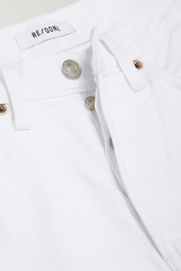 - White denim - Partially concealed button fastenings along front - 100% cotton - Machine wash - Imported
